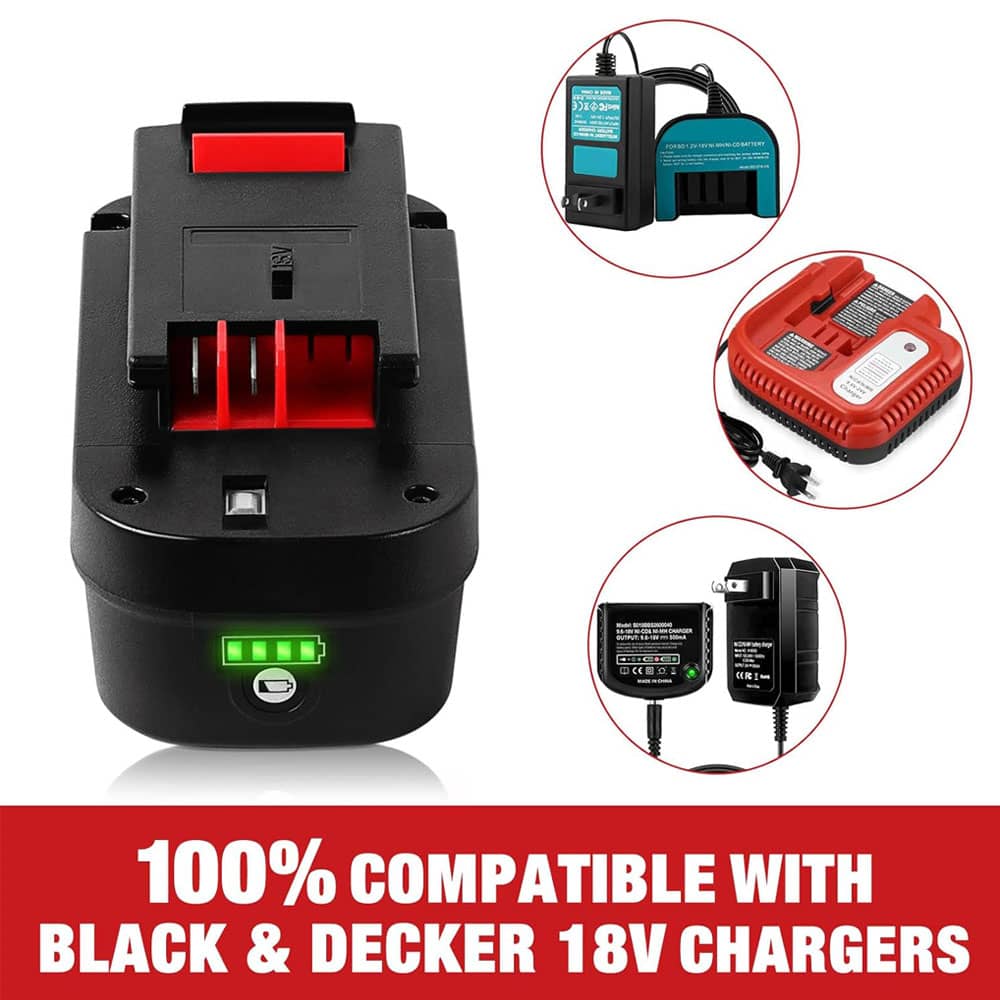 Black and Decker 18V Firestorm Cordless Tools Battery for Black and Decker 18 Voltage HPB18 HPD1800 HPD18K-2 HPG1800 HPG18K-2 NHT518 NPP2018 NPT3118 NS118 NST1810 NST2018 NST2118 [18V] Compatible Battery