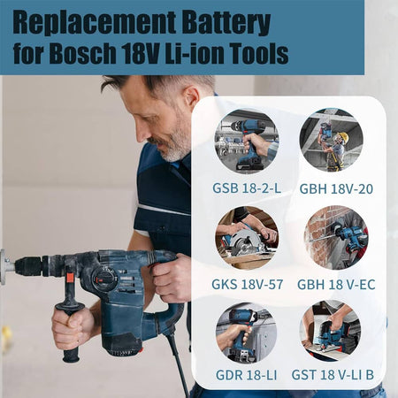 Bosch 18V Cordless Power Tools Battery for Bosch 18 Voltage BAT609 BAT609G BAT610G BAT611 BAT612 BAT618 BAT618G BAT619 BAT619G BAT622 BAT621 BAT620 [18V] Compatible Battery