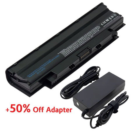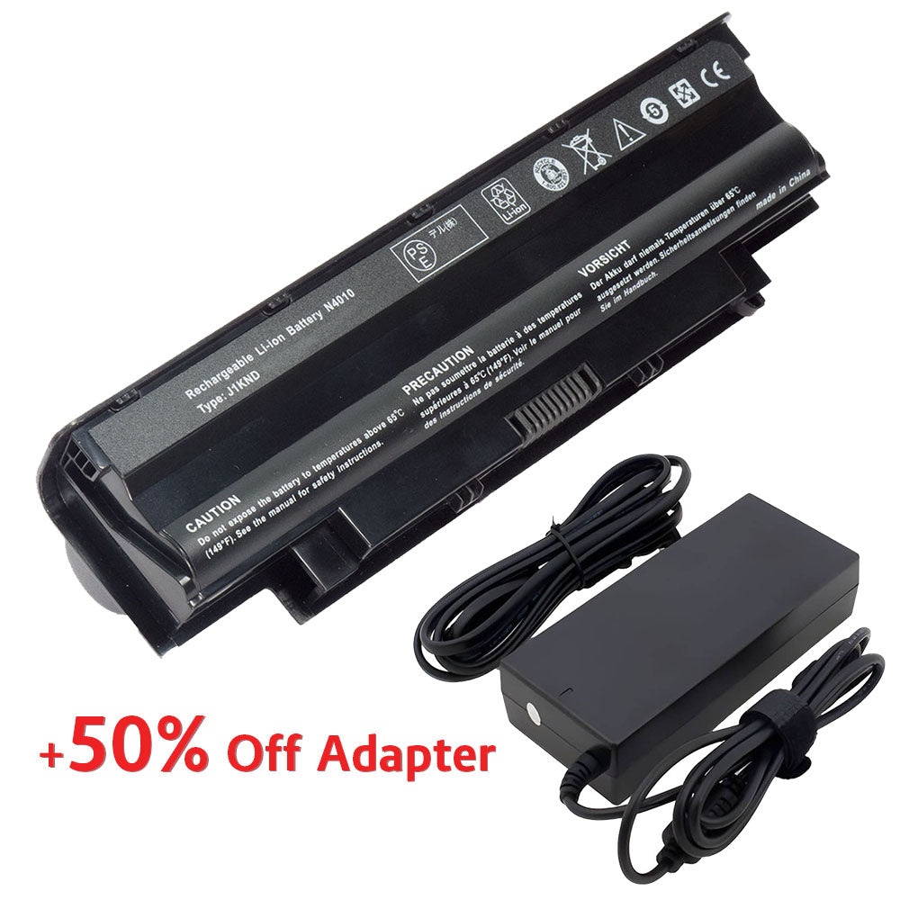 (Bundle with Adapter for 50% Off) J1KND Battery for Dell Inspiron N5050 15R N5010 14R N4010 N5110 N5030 M5030 N4110 N7110 N4050 Vostro 1540 3750 3550 Series Laptop JXFRP GK2X6 04YRJH P08E P11G P17F 9T48V [11.1V] Compatible Battery