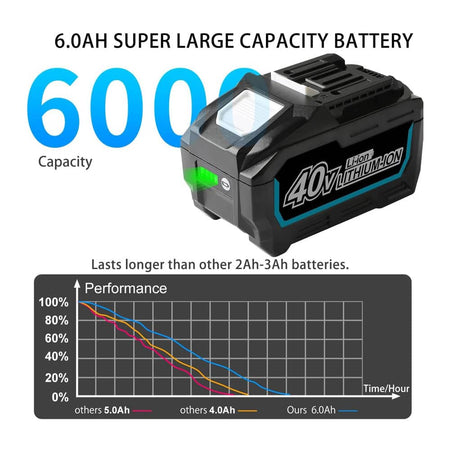 Product Type: Replacement Power Tool Battery Condition: New Cell Type: Conventional Li-ion Capacity: 6000mAh Device Voltage: 40V