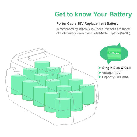 Porter Cable 18V Cordless Power Tools Battery for Porter Cable 18 Voltage PC18B PCC489N PCMVC PC18B-2 PCXMVC PC18BLEX [18V] Compatible Battery
